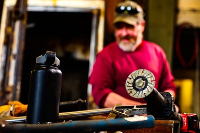 - Orient work so the wheel spins away from, not into, sharp edges. This will minimize the possibility that the wheel catches and throws the work piece or causes the grinder to kick back.