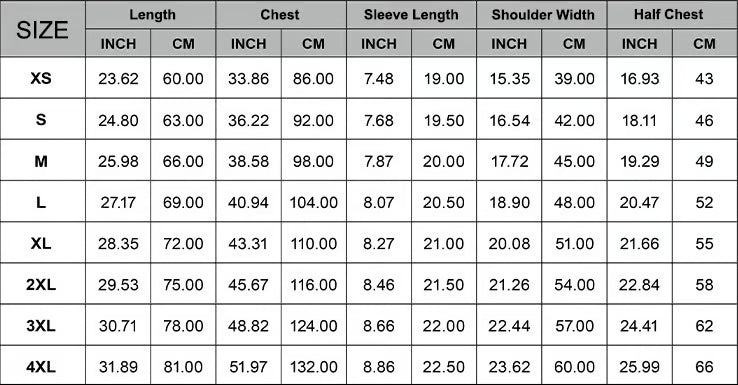 - ✔️ Sizes available: XS, S, M, L, XL, 2XL, 3XL,4XL