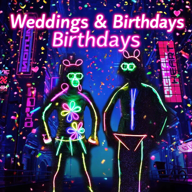 - Weddings & Birthdays 🎂 Add glowing fun to the celebration