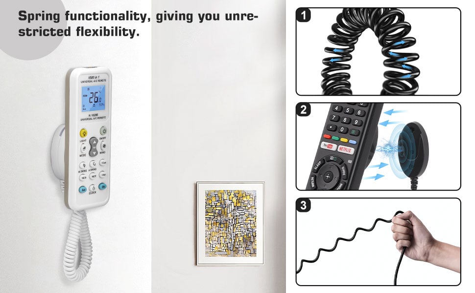 - 【Spring Rope Structure for Anti-Loss Design】The unique spring rope structure ensures that when the remote control or small items are placed back on the base, the spring automatically retracts, eliminating the worry of losing them.