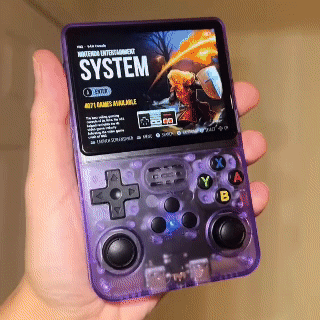 【3.5-inch IPS OCA Full-fit HD Screen & Compact Design】The R36S features a 3.5-inch IPS OCA full-fit HD screen with a resolution of 640*480, delivering vibrant colors and sharp visuals for an immersive gaming experience. Its compact size (similar to a smartphone) makes it highly portable, perfect for gaming on the go, whether you're traveling, camping, or just relaxing at home. The sleek purple design adds a touch of style, making it a great present for kids and adults alike.