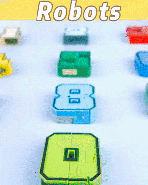 【Intellectual Development】These numbers to robots twist and turn allowing thought-provoking mental and hand activity to switch them back and forth from numbers to robots and back again.