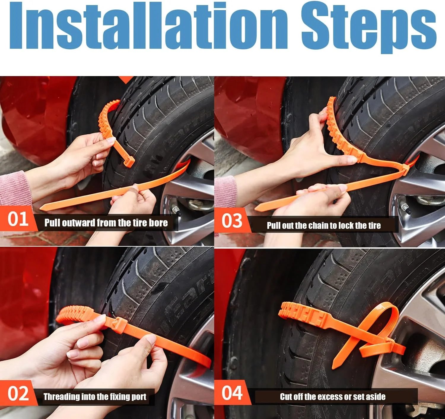 With the nail-like anti-slip chains, these snow chains provide excellent grip, ensuring stable traction on snow and ice-covered roads, helping you drive safely even in the most challenging conditions.