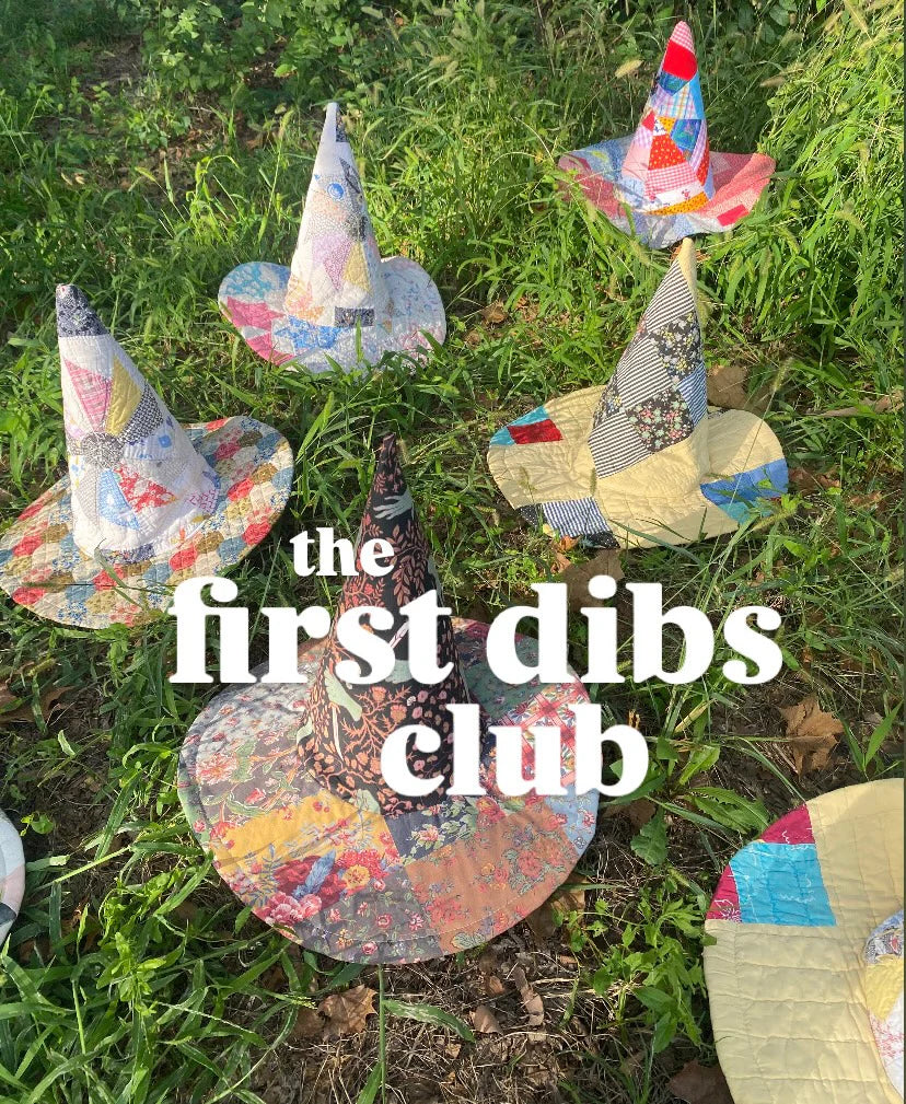 I carefully select vintage quilts—each with its own past—and transform them into unique witch hats brimming with rustic charm. No two hats are alike, just like the stories they carry
