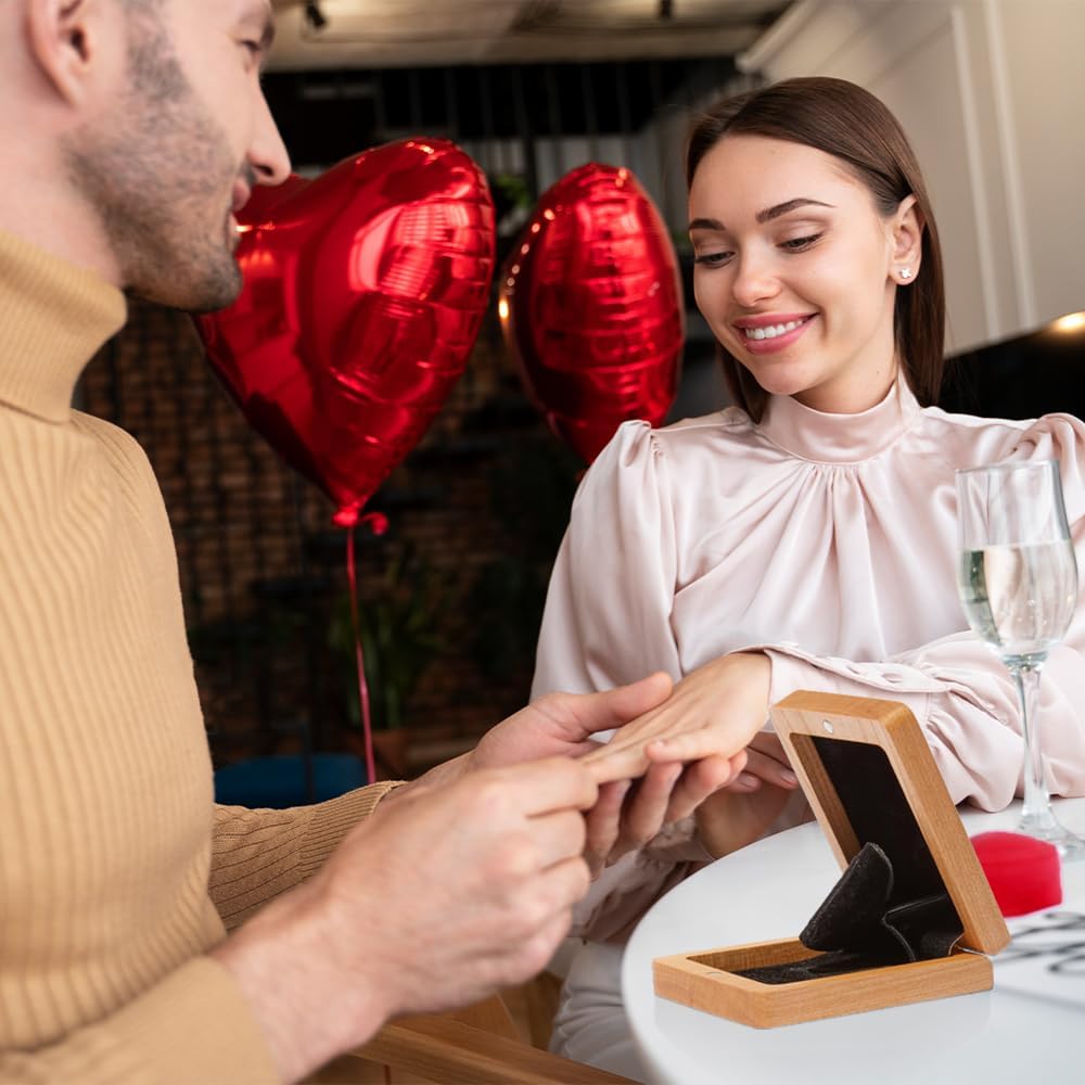 With a slim, square profile, it’s discreet enough to slip into your pocket—perfect for surprise proposals, romantic dinners, or scenic outdoor moments. The natural wooden finish adds a rustic charm while keeping your precious ring safe and secure.